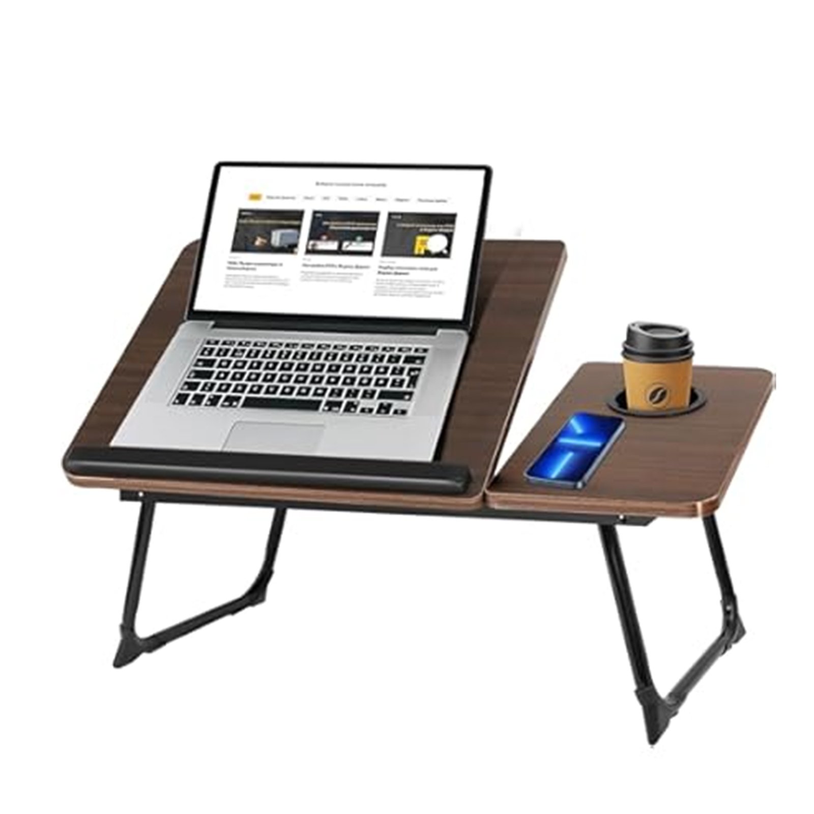 طاولة لابتوب قابلة للطي عملية وخفيفة الوزن، مثالية للعمل أو تناول الطعام على السرير أو الأريكة. تصميم قابل للطي مع حامل للأجهزة وكوب للحفاظ على النظافة، توفر راحة وسهولة استخدام في المنزل أو أثناء السفر.