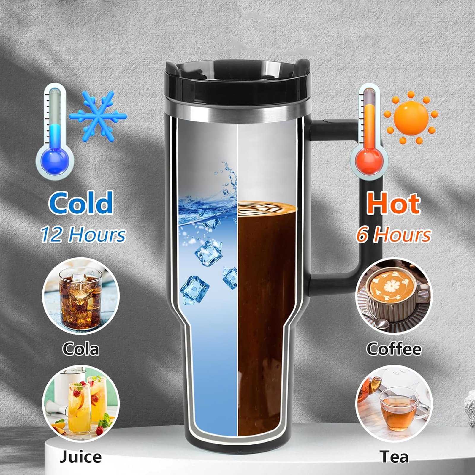 • الكوب المرفق بسعة 1.18 لتر مثالي للمشروبات الساخنة أو الباردة أثناء التنقل